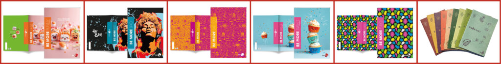 La collezione BE MORE DIFFERENT 2025 ha presentato a Big Buyer 2024, le innovazioni più recenti di BM, pensate per sorprendere e create per stimolare chi le utilizza a dare sempre il meglio di sé: mini quaderni A6 puntinati, To Do list ideali per organizzare la propria giornata e spiralati A5. Tutti i prodotti di BM sono realizzati con fantasie e design unici, la vasta gamma di prodotti, permette a chiunque di scegliere il quaderno perfetto. I quaderni A4 BE MORE DIFFERENT sono realizzati con carta di qualità da 100 grammi che assicura una scrittura fluida e senza sbavature. Tra le novità presentate a Big Buyer troviamo la linea Be More Funny, dove ogni grafica presenta una frase divertente in cui immedesimarsi. Be More Bro, la nuova linea di quaderni con grafiche fresche e accattivanti pensata per la generazione Z, sempre in movimento, creativa e pronta a esprimersi. La linea Be More Sketch, progettata per chi scrive, disegna e cancella in continuazione. Be More Sweet, che presenta copertine glitterate e profumate al gusto di lampone, offrendo così un’esperienza sensoriale unica, trasformando ogni momento di scrittura in un piacere, mentre i quaderni Be More Fluo sono arricchiti di stickers, perfetti per chi ama distinguersi con uno stile energico e moderno.