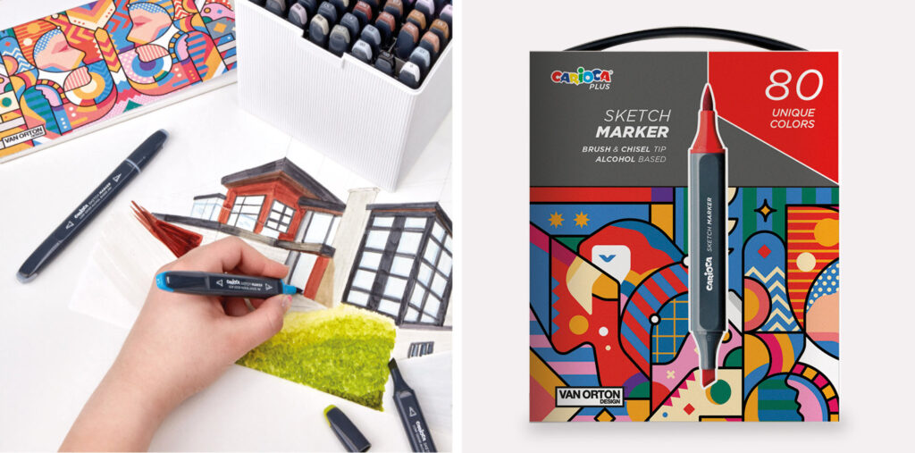 La linea CARIOCA Plus è pensata per i più grandi, per teenagers, artisti e amatori che desiderano prodotti di alta qualità per le loro creazioni. Per gli appassionati di disegno e colore, il set di marcatori doppia punta (scalpello e brush) può essere il regalo ideale. Con inchiostro a base alcol, i marker consentono di creare sfumature e giochi cromatici senza striature. L’asciugatura rapida e l’impugnatura ergonomica rendono questi strumenti perfetti per esprimere la propria creatività. La linea, di grande qualità e stile, è studiata in ogni minimo dettaglio, grazie alla collaborazione con artisti e al coinvolgimento dello studio Van Orton Design, il duo creativo la cui arte è fortemente influenzata dalla “cultura pop“, che ha ideato la grafica accattivante e decisa delle confezioni, pienamente in linea con il mood e il target a cui si rivolge.